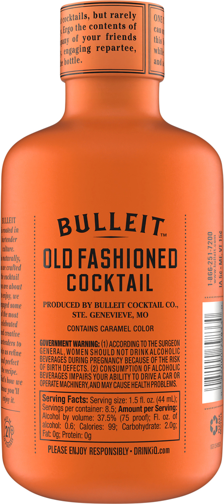 This contains .75L of Bulleit Old Fashioned Cocktail, 75 proof, from Diageo NA.