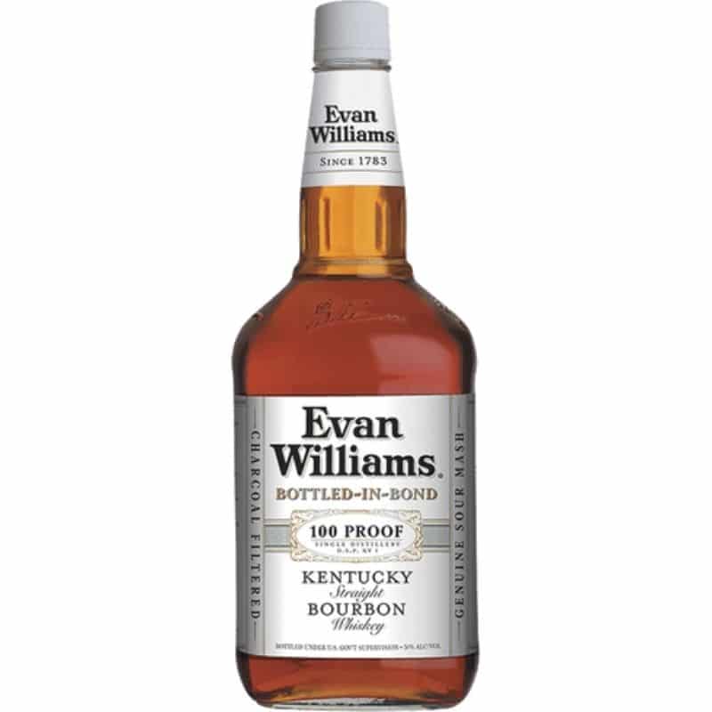 This contains 1.75L of Evan Williams White BIB, 100 proof, from Heaven Hill.