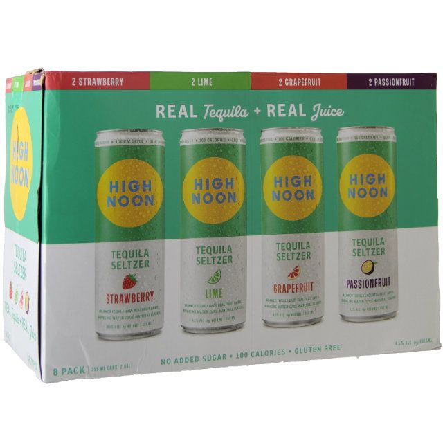 This contains 2.84L of High Noon Tequila Fiesta Variety 8Pk, 9 proof, from E & J Gallo Winery.