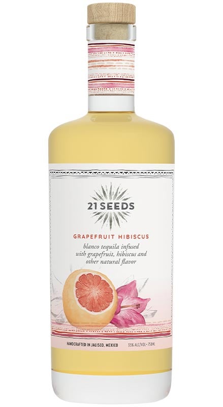 An all-natural tequila, 21 Seeds Grapefruit Hibiscus Tequila is infused with real fruit and botanicals. The grapefruits used are sourced from Veracruz. Greeting with notes of fresh grapefruits on the nose, this smooth tequila delivers a citrus-forward palate with soft sweet notes. Best enjoyed on the rocks or in a tequila-forward cocktail like a Paloma.21 Seeds Grapefruit Hibiscus Tequila was awarded with Gold and 91 points at the 2021 Bartender Spirits Awards as well as with Gold at the 2019 WSWA.Get 21 Seeds Grapefruit Hibiscus Tequila today!