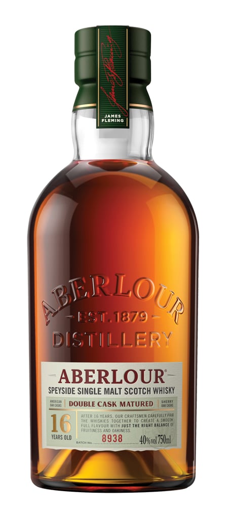 Aberlour Single Malt Whisky is made exclusively from Scottish barley, which is malted for approximately seven days before being dried above an unpeated kiln. Once the barley has been dried, it is milled and mashed with water drawn from St. Drostan’s Well. The well, which has been the distillery’s source for water for over a century, was named after a missionary who used water from the well to baptise inhabitants in 580 AD. After the barley has been mashed, it is fermented before being twice-distilled through Aberlour’s copper-pot stills. The stills enjoy broad bases to expose as much direct heat as possible to the wash, and are equipped with swan-shaped necks which capture only the most pure vapors during distillation.Following distillation, Aberlour 16 Year Old Single Malt Scotch Whisky is matured in a combination of American oak casks that were previously used to mature bourbon and European oak casks that were previously used to mature Oloroso sherry. Oloroso sherry is a dark and nutty type of fortified wine, and the used Oloroso casks impart subtle yet sweet notes of dried fruits, caramel, plums and cherries to the whisky, and contribute an incredible layer of complexity.Aberlour 16 Year Old Single Malt Scotch Whisky has a rich aroma of raisins, prunes and figs. The aroma gives way to notes of toasted almonds, red fruits (particularly plums) and baking spices on the palate. The finish is warm and spicy, with touches of honeyed oak, ginger and citrus lingering.Aberlour 16 Year Old earned the Double Gold Medal at the San Francisco World Spirits Competition and a Gold Medal from the World Whiskies Awards in 2017.Pick up a bottle today!