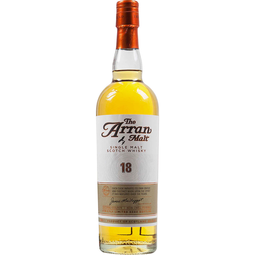 The reason the distillery was built here, says James MacTaggart, the master distiller at Arran Distillery, was because there was a very good water supply. In fact, it was tasted and it was decided that it was probably one of the best water supplies in Scotland for making whisky.After a trilogy of limited edition expressions, Arran has finally unveiled Arran 18 Year Old Single Malt Scotch Whisky, the oldest whisky ever released by the distillery and a new, permanent fixture in Arrans core range. This is a very special bottling for us, says MacTaggart. As the most mature expression of the Arran Malt, it represents the very best of the distillery in this, our 21st year.The whisky is made from unpeated Scottish barley, which is malted and then fermented using a proprietary strain of yeast. Once the barley has been fermented, the wash is distilled twice first through Arrans copper-pot wash still and then again through Arrans copper-pot spirit still. The stills were custom designed, says MacTaggart, and shaped to allow the lighter vapors to come up through the stills. As a result, Arran Single Malt Scotch Whisky has an appreciably softer and more delicate flavor profile.Arran 18 Year Old Single Malt Scotch Whisky is matured exclusively in ex-sherry butts for a minimum of 18 years before being bottled at the distillery at 92 proof. As a result, the whisky has a deep golden color and enticing aroma of caramel, honeysuckle and toasted oak. The palate morphs into flavors of tropical fruit, particularly pineapple rinds, as well as toffee and candied nuts. A rich finish lingers with notes of dark chocolate, cinnamon and cream.Pick up a bottle today!